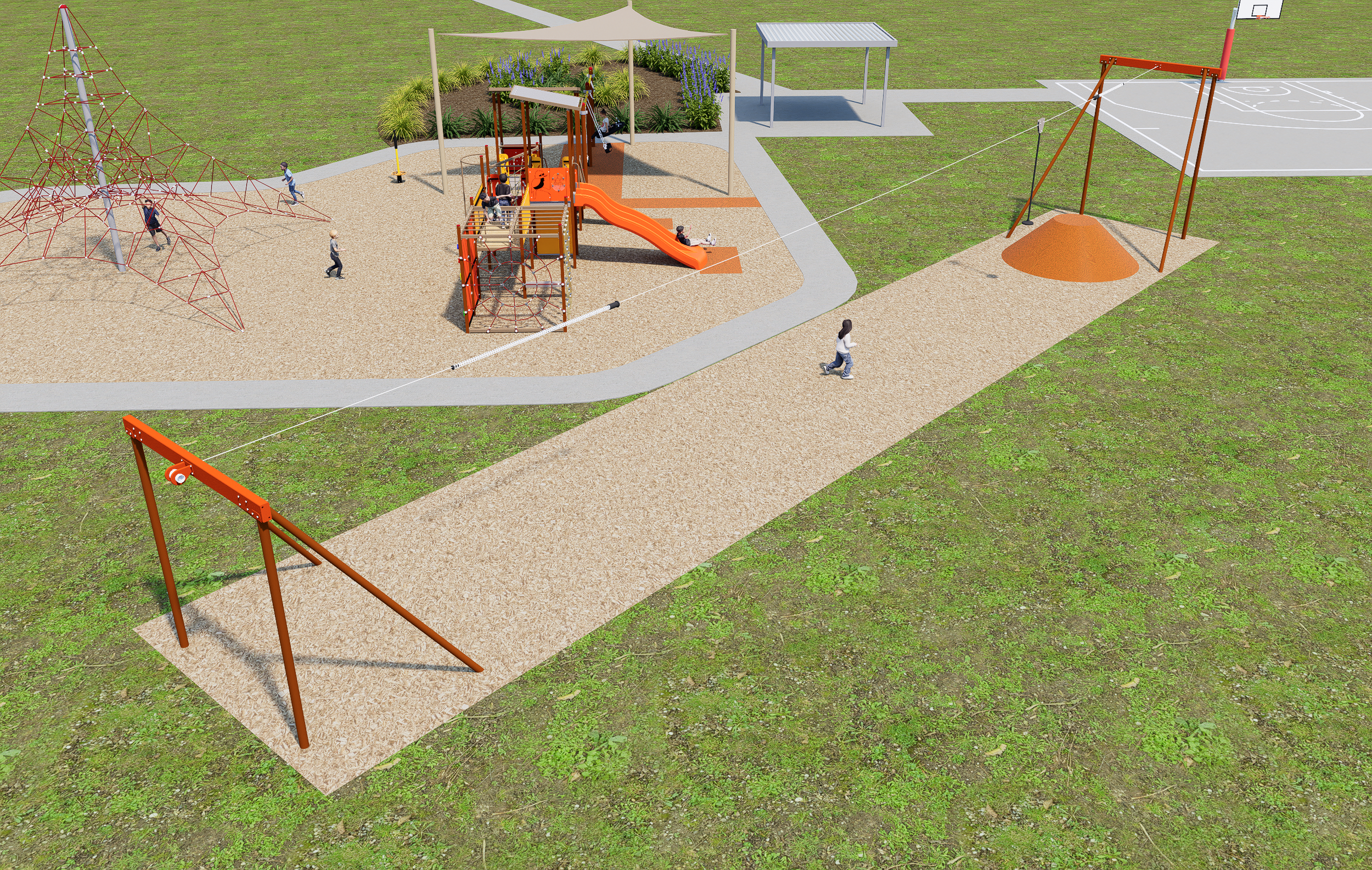 There was strong support for a traditional playground design with a foundation of a medium combination unit and swings. Popular features for older children included a flying fox and climbing structure which were both incorporated into the design. A basketball court was the most popular active recreation element.