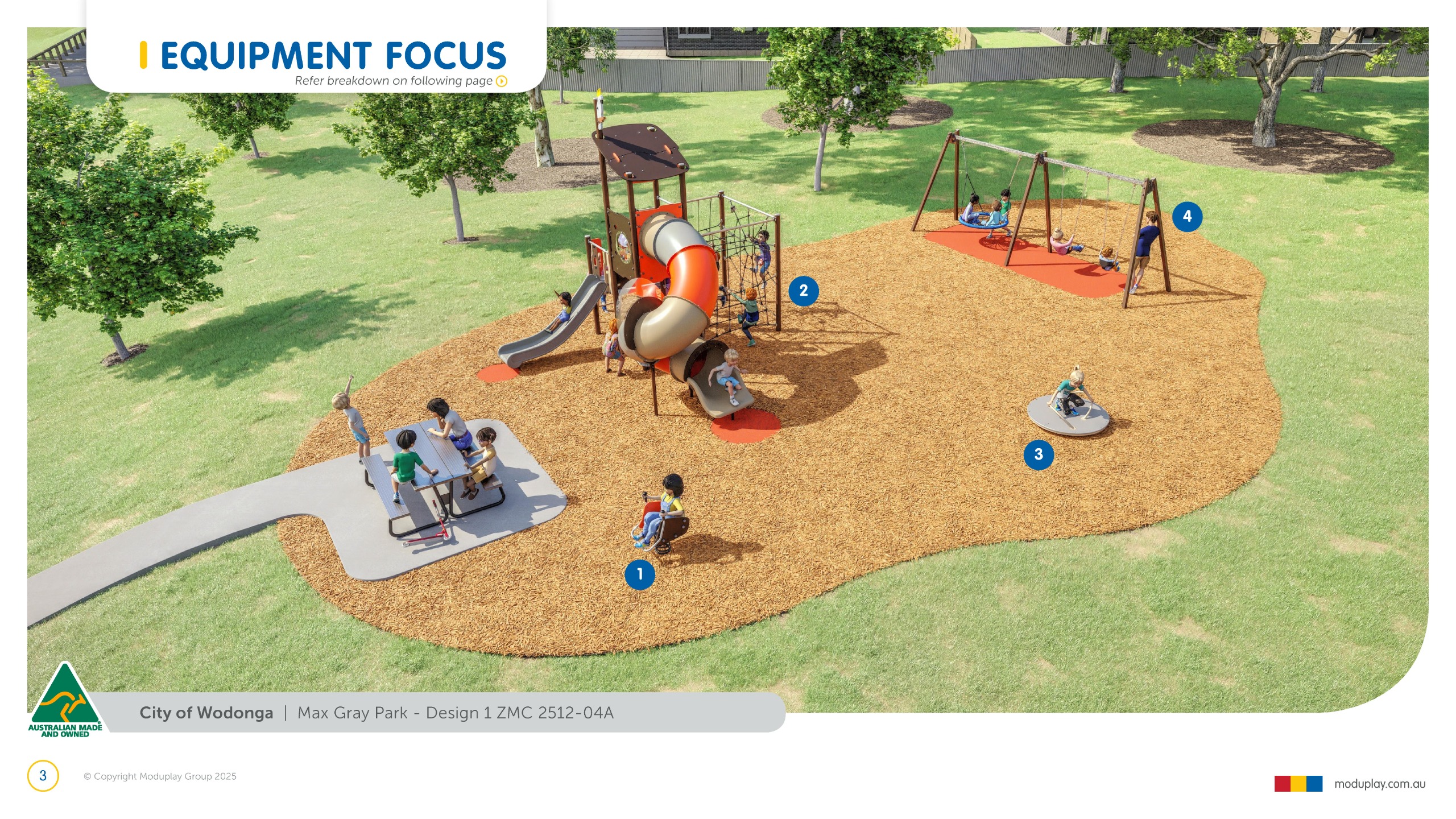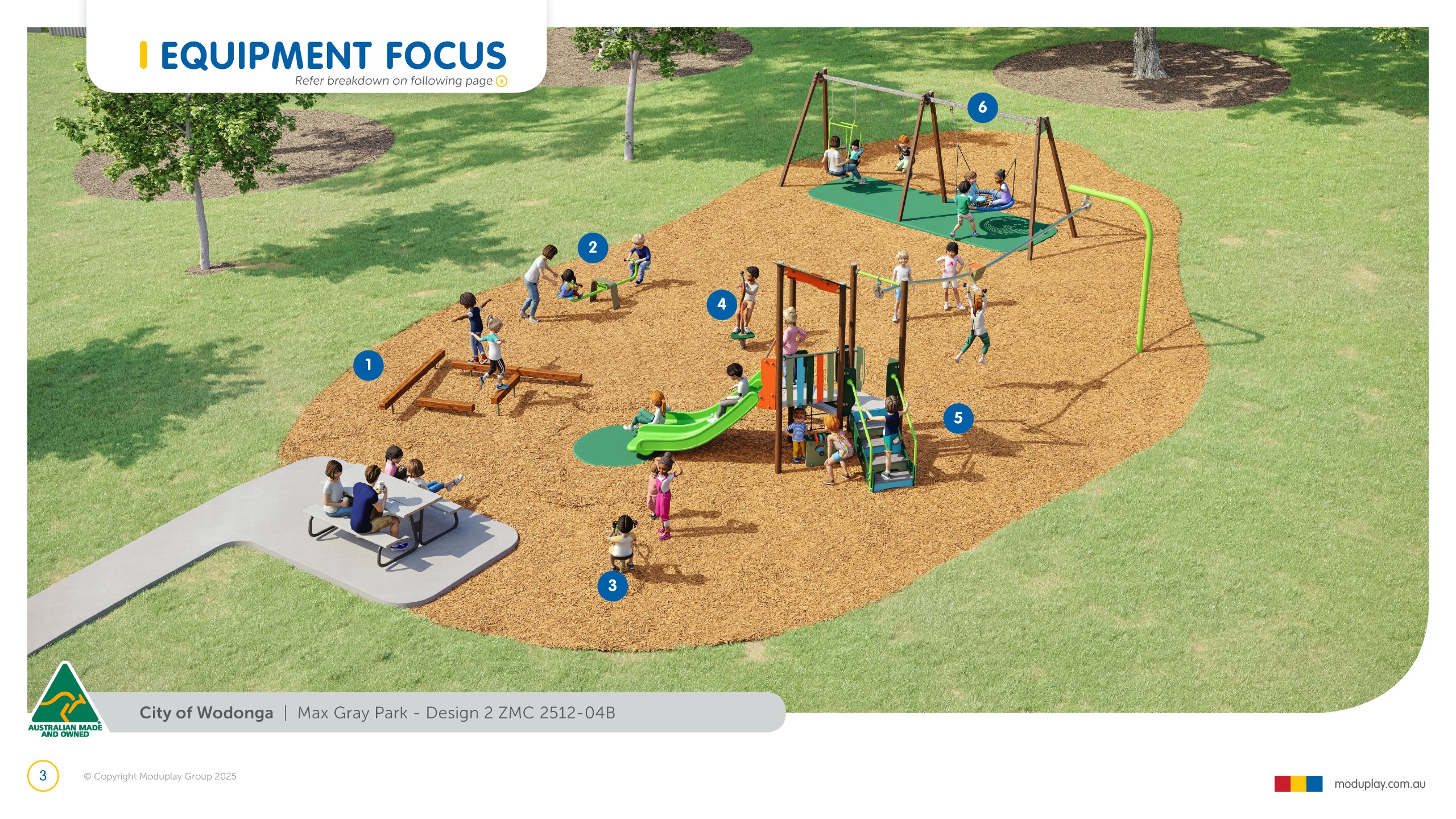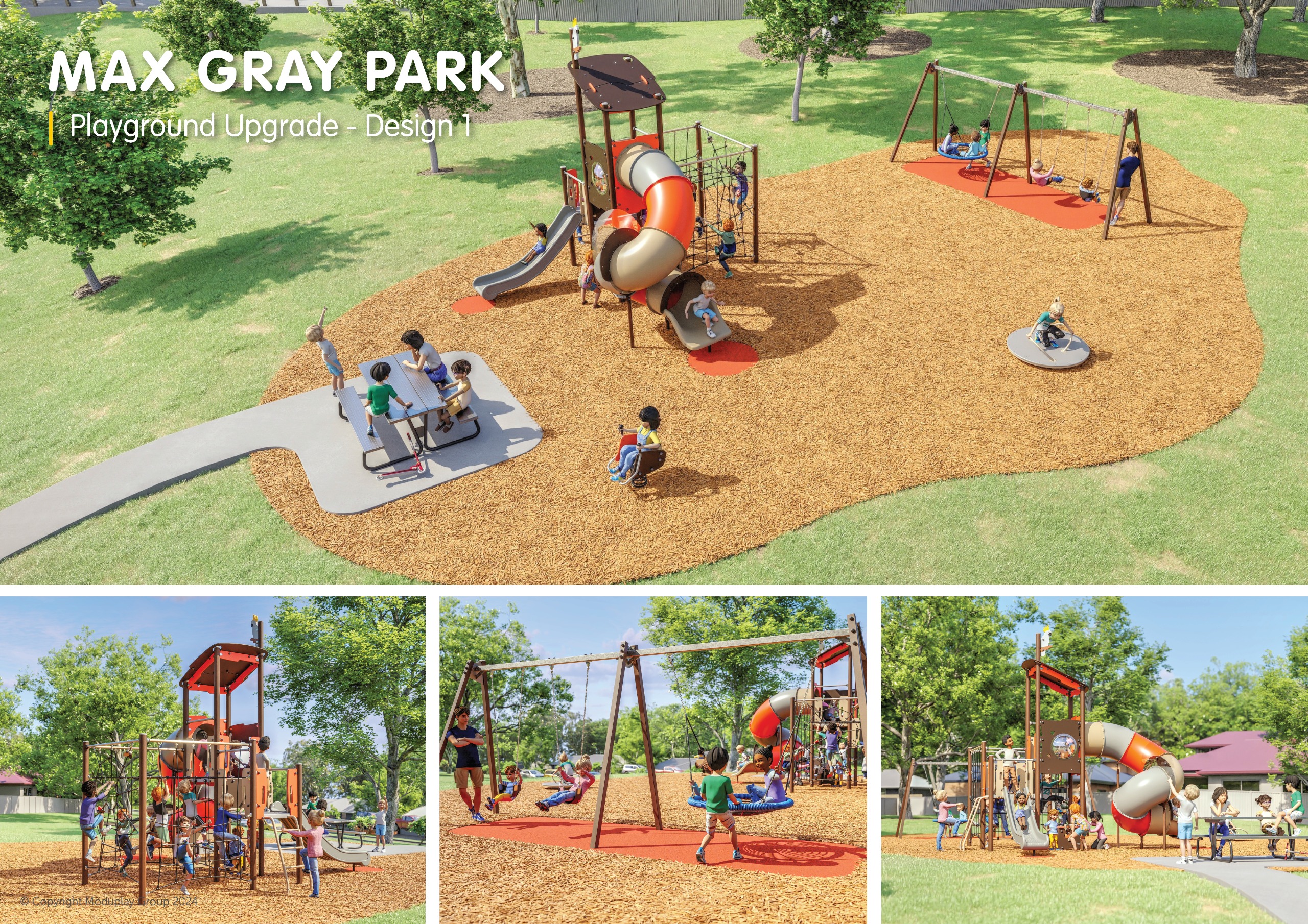 In late 2025, we engaged with the community to determine priority equipment for the redevelopment of the Max Gray Park playground. With the existing equipment now due for renewal and an understanding of the community's preferences for equipment within this park, a detailed design has been developed to ensure the new equipment can deliver appropriate opportunities for play and fits within the available budget.